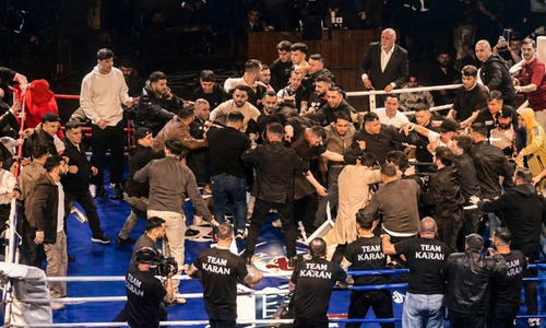 Массовой дракой завершился титульный бой с участием российского боксера. Видео
